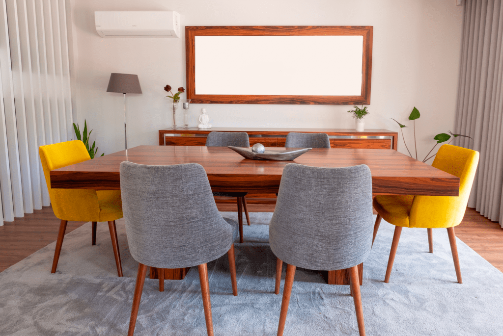 Espelho de sala de jantar com moldura em pau ferro. Objeto decorativo que promove um ambiente mais moderno, sofisticado e agradável.